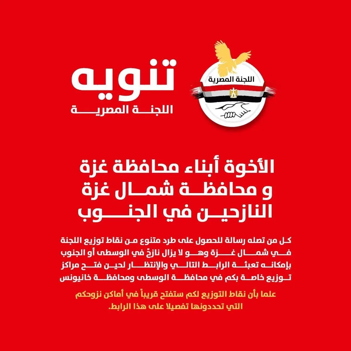 تنويه هام بخصوص تسجيل المستفيدين من مساعدات اللجنة المصرية